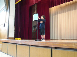 終業式では、1年生も 元気に2学期のがんばりを発表しました。