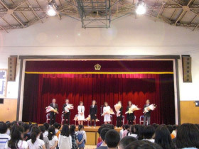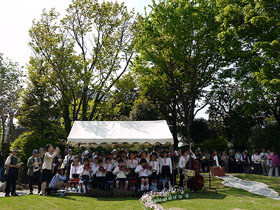与謝野晶子氏を記念した「与謝野公園」が、本日 住居跡(杉並区南荻窪4丁目3番22号)に開園しました。(旧・南荻窪中央公園) 桃二小を代表し、早朝合唱合奏クラブが「校歌」 (作詞:与謝野晶子、作曲:山本 直忠) を演奏しました。 青空の下、子どもたちの澄んだ歌声が響き渡りました。