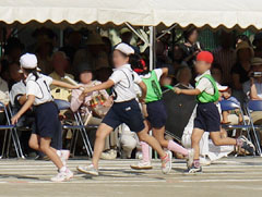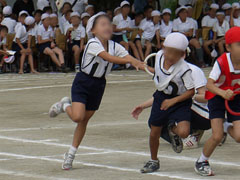 高学年はチームで協力をしてバトンパスやリレーの練習をしました。