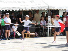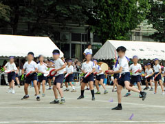 勝負のポイントは、つなを引く力と走って助けにいくスピードです。