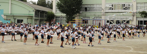 エイサーを全員ぴったりあうところと、こころを1つにして