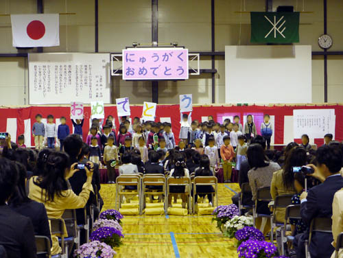 上の写真は、2年生からの「歓迎の言葉」の様子です。