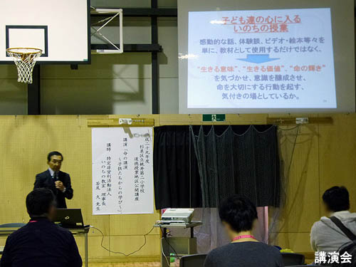 ▲同日、若尾久(わかお・ひさし)先生をお招きし、「命の講演 〜子供たちからの学び〜」