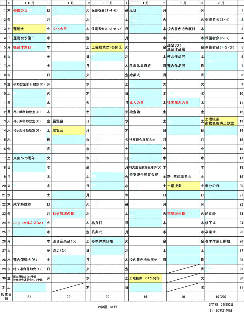 ※変更する場合があります。最新の行事予定は各月の「学校だより」でご確認ください。