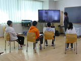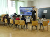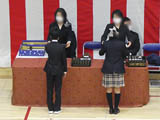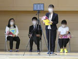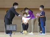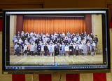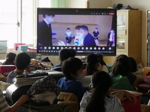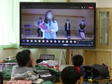 2年生たちが、モニターを通じてお祝いを披露しました。
