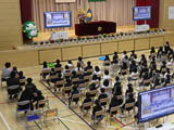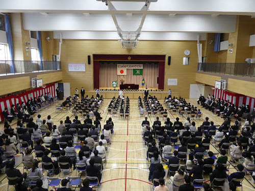4/6、体育館アリーナで「入学式」を行いました。