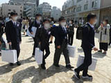 雲一つない青空の下、75名の卒業生が力強く桃二小を巣立ちました。