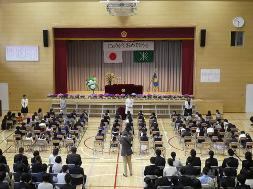 4/6、体育館アリーナで「入学式」を行いました。