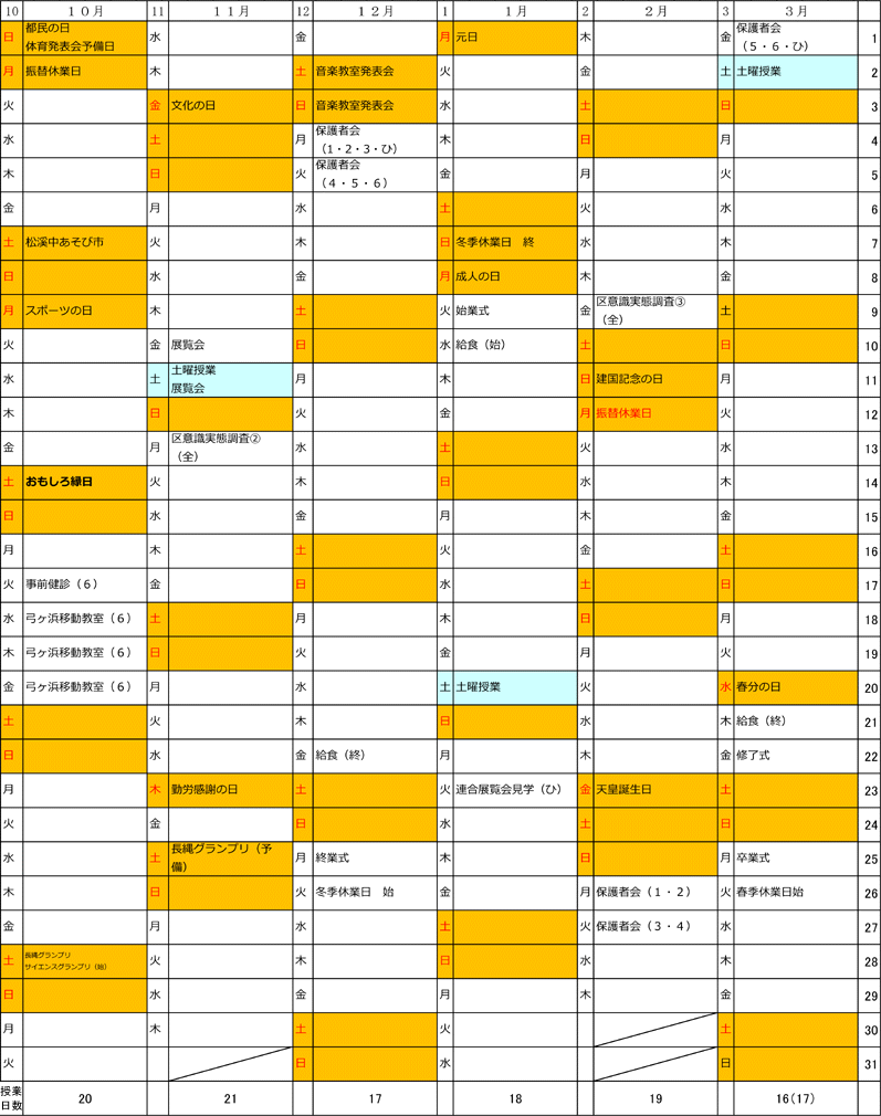 ※変更する場合があります。最新の行事予定は各月の「学校だより」でご確認ください。