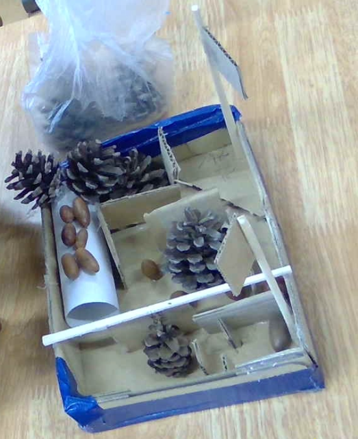 木の葉やどんぐり、まつぼっくりなど、秋のものを見つけて、集めて、思い思いに作りました。