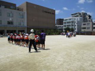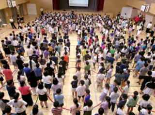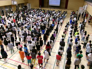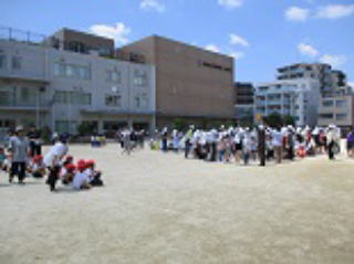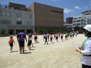 各教室の前を1年生と6年生が手をつないで歩きました。