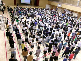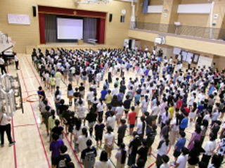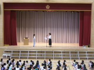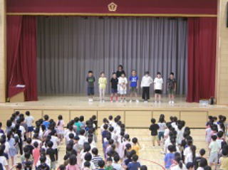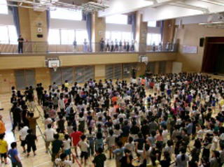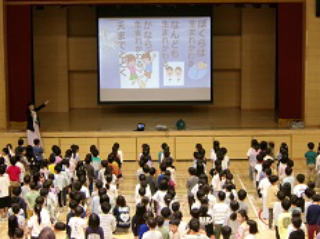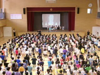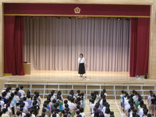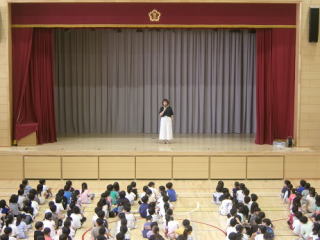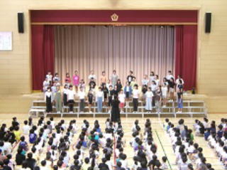 5・6年生の歌声を聞いて、声の出し方をまねして歌いました。。