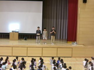 2年生のお手本に合わせて、歌いながら手あわせをしました。