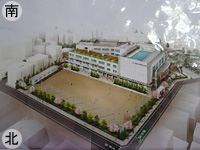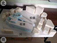 平成28(2016)年3月撮影 新校舎の配置モデル (上が北) |