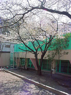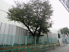 | みんなに愛されている白旗桜も、校舎の変遷とともに数が少なくなりました。 昭和43年(1968年)7月、校舎改築の際に伐採された記録が残っています。 平成29年(2017年)3月、プール解体の際にプール東側の1本が撤去されました。 残されたのは、学校北側の1本のみとなりました。 |
