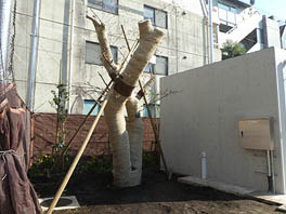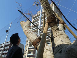| 残された白旗桜は、平成の大規模改築工事の間、ずっと皆の心の支えとなってくれました。 |