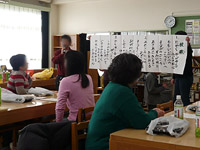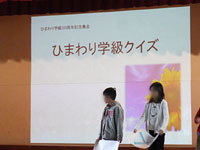 6年生2人、読書活動支援チームおよびひまわりボランティアの3人が拍手で迎えられ、握手の歌、ゲーム、児童全員の「ひまわり太鼓」、お礼の言葉などで楽しく過ごしました。司会やはじめの言葉、終わりの言葉も子どもたちが分担し、あたたかな会でした。