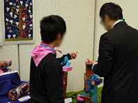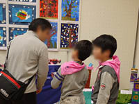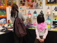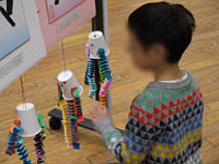 たくさんのカラフルな作品・工夫をこらした作品を見て、目をキラキラさせていました。