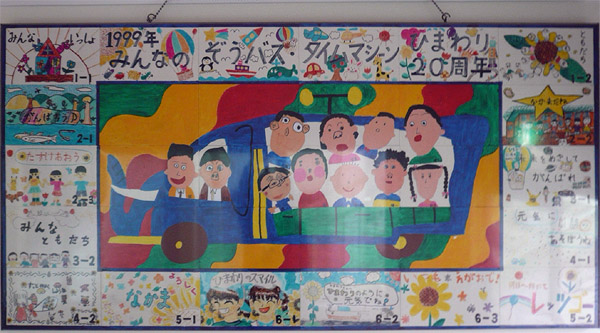 平成11年(1999年)は、開級20周年でした。このとき各学級のみんなで作った「ひまわり学級二十周年記念共同作品」は、今もひまわり学級の前の廊下に飾られています。