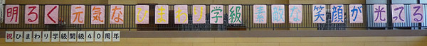また、二十周年記念集会では、当時の音楽の先生に作曲していただいた学級歌「ひまわり」を歌い、ベートーベンの「喜びの歌」を合奏しました。