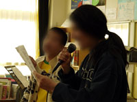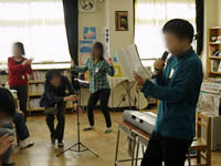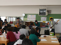 以前お世話になった先生方のバンド「えま〜じぇんし〜ず」の演奏を聴き、一緒に歌いました。