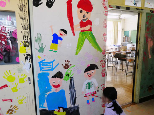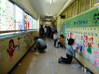 「校舎の思い出プロジェクト・桃二小に絵を描こう」が実施されました。