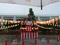 | 生憎の雨でしたが、校庭には立派な櫓が。 |