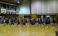 | 夏休み終盤の8月24日。 桃二小にて、おやじの会・ももにわ・チームロックソーランを応援する会により、ゲーム大会とロックソーランが開催されました。 悪天候のため体育館での開催でしたが、大勢の人が参加して、大盛況となりました。 |