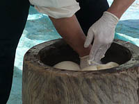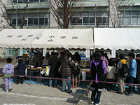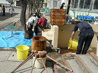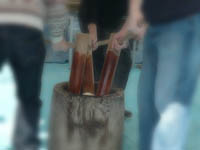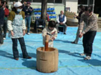 | 2月22日、ももにわ・おやじの会企画、川南共栄会協力 による「もちつき大会」が開催されました。 冬晴れの下、校庭にはパワフルな掛け声が飛び交っていました。 |