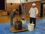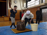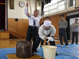 2月14日、桃二小体育館にて おやじの会・ももにわ による「もちつき大会」が開催されました。