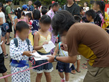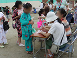 翌29日(日)には、おやじの会主催のクイズ大会、そして 前日と同じく、荻窪五丁目町会主催の盆踊り大会がありました。 校舎前のテントには、クイズ参加の子どもたちがたくさん集まりました。