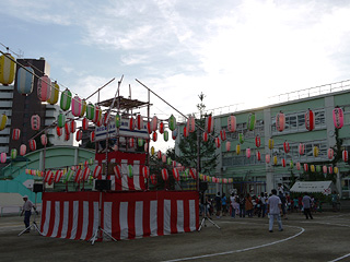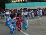 荻窪五丁目町会はじめ地域の町会、商店会の皆さん、そして桃友会、おやじの会が 趣向をこらした、夏休み恒例の「荻窪盆踊り大会・夏祭り」です。 子どもたちだけでなく地域の方々も一緒になって、楽しいひとときを過ごしました。 |