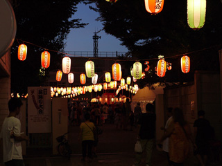 6時からは、荻窪五丁目町会主催による盆踊り大会が行われました。 これは、近隣の町会を始め、商店会・PTA・地元青年部などの協力によって 12年前から企画・運営されてきたもので、年々盛況となっています。 盆踊り大会では、近年掘り起こされた幻の「荻窪音頭」も流れました。 数十年ぶりによみがえった、地元・荻窪の祭り唄です。