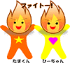 子どもたちが決めた今年のテーマは、「がんばろう日本2011」です。 桃二小5年の児童二人によって、元気いっぱいのマスコットもデザインされました。 ファイトに燃える「たまくん」と「ひーちゃん」です。