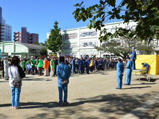 11月4日(日)午前10時から正午まで、桃二小校庭・体育館で、 平成24年度 桃井第二小学校 震災救援所訓練 が開催されました。