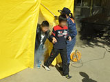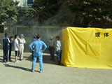 この訓練は、地域の皆さんと都立荻窪高校・桃二小に通う皆さんが一緒に訓練し、 いざと言う時に助け合う 「震災救援所」 への理解を深めることを目的としています。 今回は、体験型のものを中心にして、8種の訓練を実施しました。 |