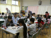 ランチルームにて、土曜日学校「ももにっこ」の囲碁教室・おはなしウーフの会を開催しました。