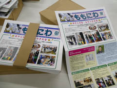 今年度版「広報ももにわ」が納品されました。トップ記事は楽しかったおやじの会もちつき大会です。他にも、ももにわによるサポートや活動内容の記事が並びました。