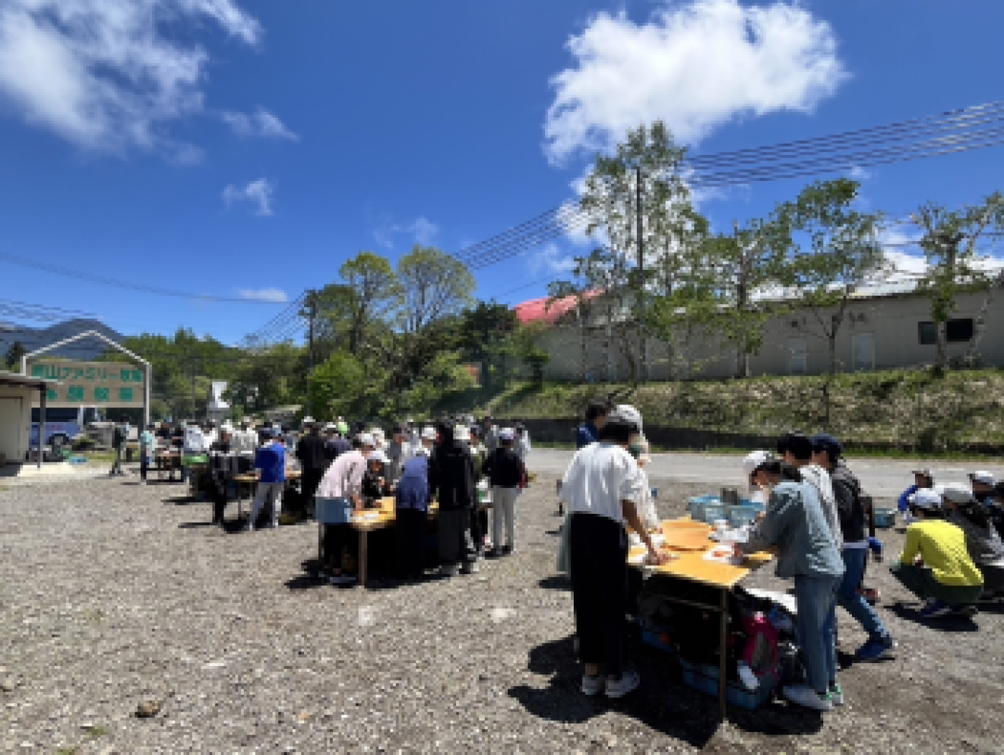 鷹山ファミリー牧場に行き、飯ごう炊さん「カレーライスづくり」をしました。自然豊かな場所に囲まれながら班で協力し美味しいカレーを作ることができました。