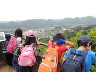 | 登った先には、素晴らしい景色が広がっていました。 頂上でクラス集合写真を撮りました。 |