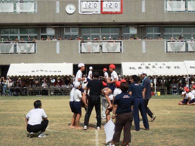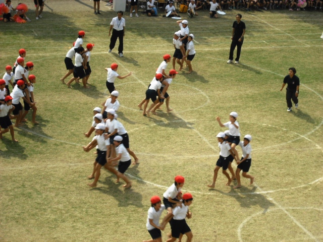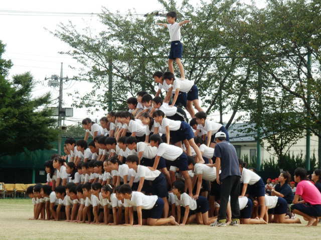 | 5年団体演技「桃五ソーラン 2012」 | 6年団体演技「組体操」 |