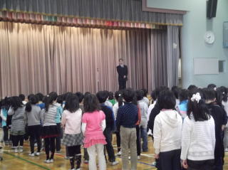 子どもたちは終業式にもいい姿勢でしっかりお話を聴いていました。