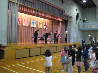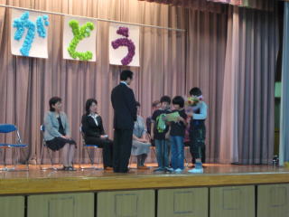 離任式。退職や転任された先生方と約一カ月ぶり