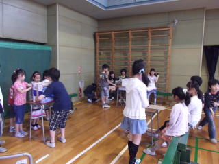 5年生、6年生は1,2年生が迷子にならないようにと声をかけながらお店をまわっていました。