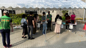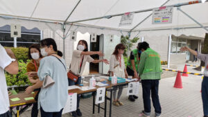 | <受付時にはマスク着用、体温のチェックなどを行いました> | |