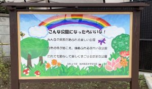 『こんな公園になったらいいな』と書かれた看板の製作を