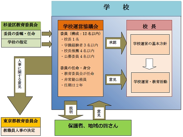 律」の改正により導入されました。杉並区教育委員会では学校運営協議会が