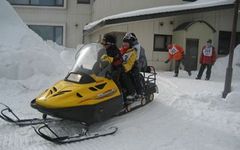スノーモービルは小型雪上車で、スキー場や雪山の安全パトロールで