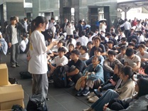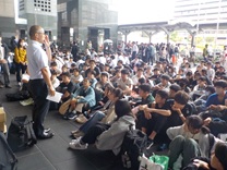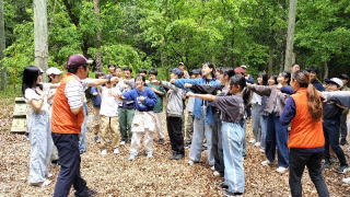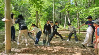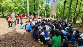 1年生は7時30分に西宮中校庭で出発式を行ったあと、予定通り8時に井の頭通りを出発しました。途中、談合坂SAで休憩をとり、予定よりも早く11時に山梨県北杜市の国際自然大学校日野春校に到着しました。 木々に囲まれた緑の中で、グループ毎に輪になってお弁当を食べたあと、いよいよ体験プログラムのスタートです。1グループ10名ほどに分かれて、ファシリテーターの皆さんの指導のもと、仲間づくりプログラムや冒険プログラムなど、様々なプログラムに取り組みました。 与えられたミッションを、コミュニケーション力と体力を使って解決するプログラムによって、仲間と協力して問題を解決するスキルを身に付けることができたと思います。今後の学校生活で活かせる学習ができました。 12時過ぎから15時過ぎまで約3時間の活動でしたが、時間が経つことも忘れるほど集中して取り組んでいました。 15時40分に宿舎に向けて国際自然大学校日野春校を出発、16時10分に宿舎に到着しました。