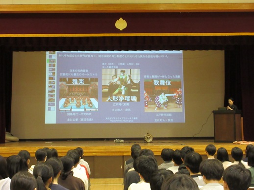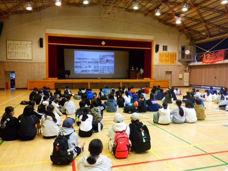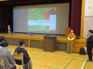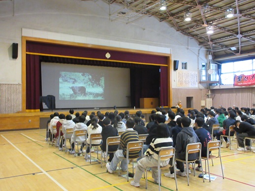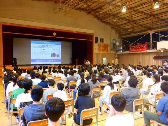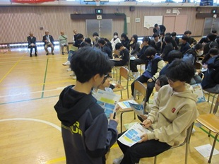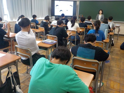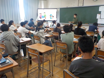 「国際理解教育」 国際理解を通して、SDGsについて考える授業を2年生対象に行いました。国際協力機構(JICA)のボランティアとして、ザンビアやモロッコ、マレーシアで活動されてきたお二人の講師をお招きして、現地の自然や文化、生活の様子、課題などについて、写真や動画を交えてお話をしていただきました。お話を聞いた後、SDGsの17の目標について、自分たちが取り組めることや課題などについて話し合いました。 SDGsは自分とはかけ離れたものと感じていたが、今日の授業によって、自分たちが普段の生活の中で取り組めることがあることが分かったなどの感想が生徒から聞かれました。 ![]() ![]() 第1学年 いのちの教育